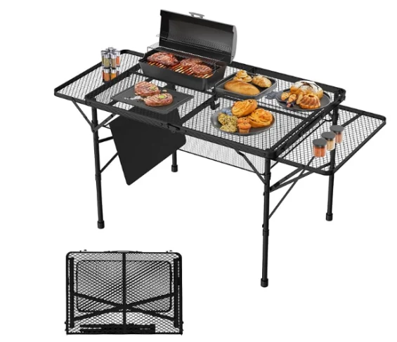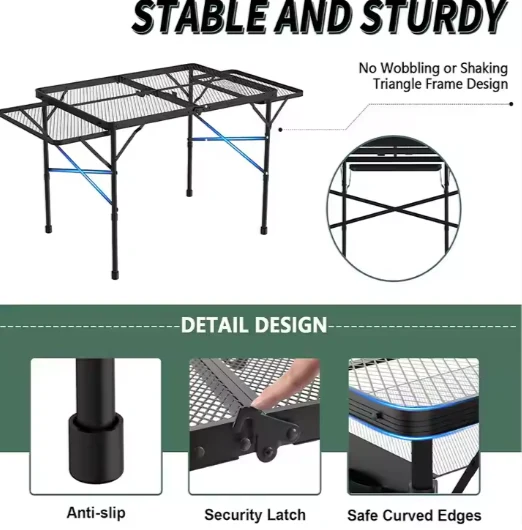 Alloy Camping Mahaia Kanpoko mahai tolesgarria 2 hegaleko panelekin, 3x2 ft kanpineko mahaiarekin Malla mahaigainarekin, altuera tolestura tolestura mahai-mahaia, piknik, kanpin, barbakoa, hondartzako kanpoko taula eramangarria
