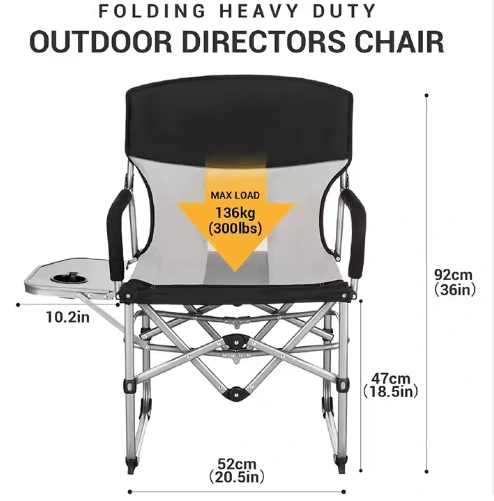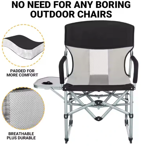BBQ Camping Picnic Aulkia, Kanpin Kanpalaren tolesgarria, Heavy Day Director Portable Zuzendariak Helduentzako Aulkiak Albo Mahaiarekin Kanpoko estilo trinkoa