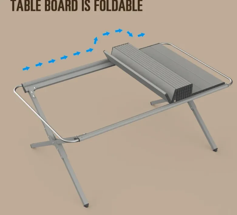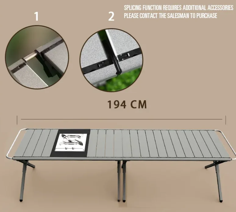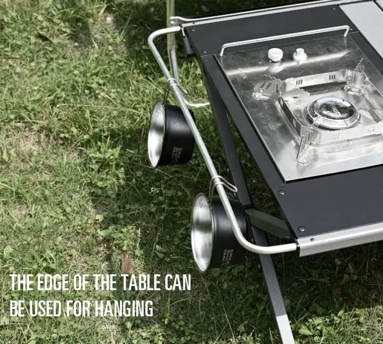 Funtzio anitzeko funtzio anitzeko tolesgarria Igt taula, zure beharren arabera. Ezin hobea kanpin, barbako, kanpoko sukaldaritzarako eta beste. Mahaiaren alde platerak eta tresnak zintzilikatzeko erabil daiteke