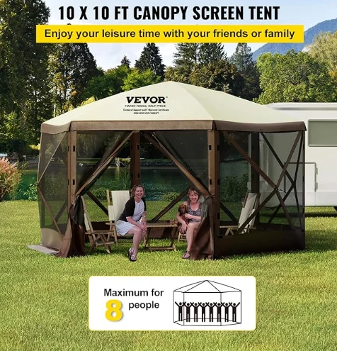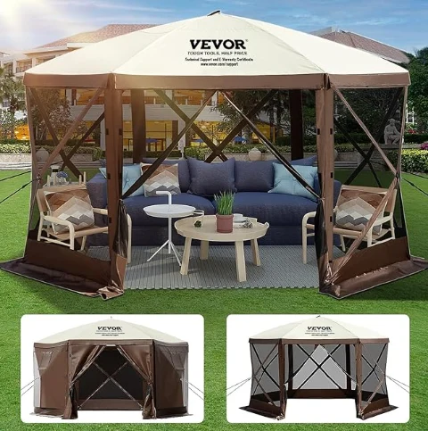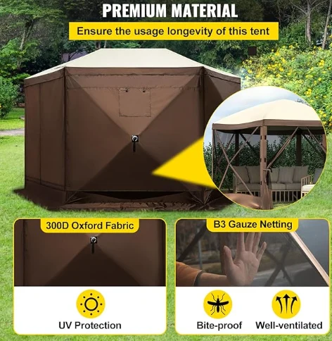 Euri iragazgaitza Pergola Camping Canpy karpa, Camping Gazebo karpa 300d Oxford ehun eta B3 Gauze saretaz eginda dago. IPX3 iragazgaitza da, ziztadak eta UV froga. 12 'x 12' Gazebo Canopy-k espazio handia eskaintzen du kanpoko aterpetxearen erabilerarako.